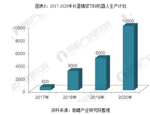 根据长盈精密TR8机器人生产计划,2017年下半年实际生产500台,到2020年将实现年产万台的规模。