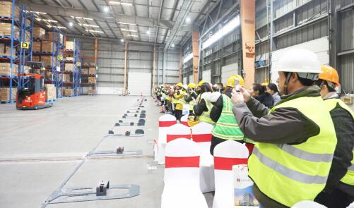 嘉宾观看合力AGV入库作业