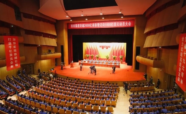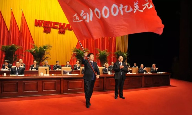 2月5日,潍柴集团在潍坊大剧院召开突破2000亿表彰暨迈向1000亿美元动员大会,总结表彰为企业发展做出突出贡献的先进集体,市委书记、市人大常委会主任刘曙光向山东重工集团党委书记、董事长,潍柴集团董事长谭旭光授旗,全面吹响迈向1000亿美元的号角。