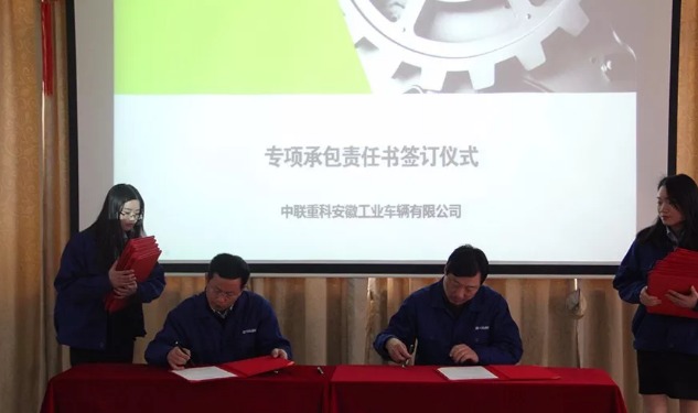 在专项承包项目书签订仪式上,江明总经理与各部门责任领导签订了2018年专项承包项目书,销售公司、海外业务部分管领导与各市场经理签订了销售目标责任承包书。项目书的签订是一份承诺,更是一份责任,为2018年树立了奋斗目标,坚定了前进的方向。