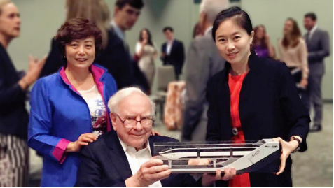 巴菲特手持比亚迪云轨模型