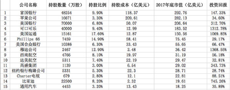 注:2018年致股东的信中,披露的前15大持仓,排名按照市值规模