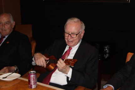 2010年9月,巴菲特在访问比亚迪公司时即兴演奏Ukulele