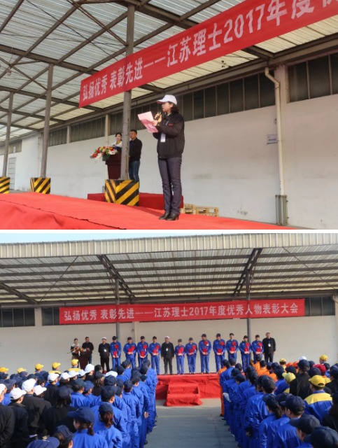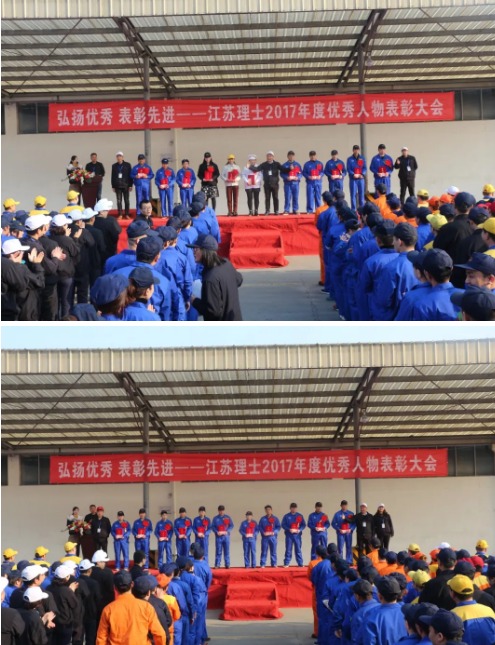 2018年3月12日早晨,江苏理士电池有限公司2017年度优秀人物表彰大会在生产区卸货平台隆重举行,公司全体干部员工参加了本次大会。
