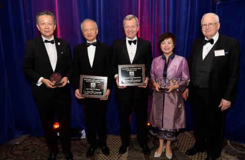 李柯女士(右二)荣膺“美中商业领袖奖”,与中国驻美特命全权大使崔天凯先生(左二)同台领奖