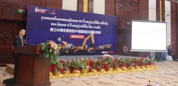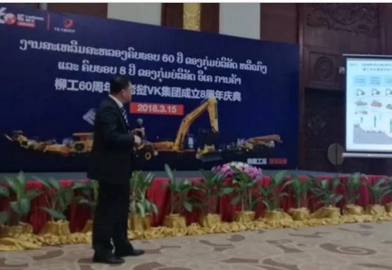 2018年3月15日,“柳工60周年暨老挝VK集团成立8周年庆典”在老挝万象举行。老挝财政部副部长西拉·朗教先生,交通部副部长维来康·博萨拉女士,计划投资部投资促进司司长玛侬通·翁赛先生,老挝中国商会会长孙磊先生,柳工机械亚太公司总经理陈灏先生,老挝VK 集团董事长维央康·彤娜丽女士和总经理张珂先生等100余名嘉宾出席了此次庆典活动。老挝电视台、新万象报、老挝资讯网、Lao Star电视台等多家老挝当地媒体对本次活动进行了专访和专题报道。