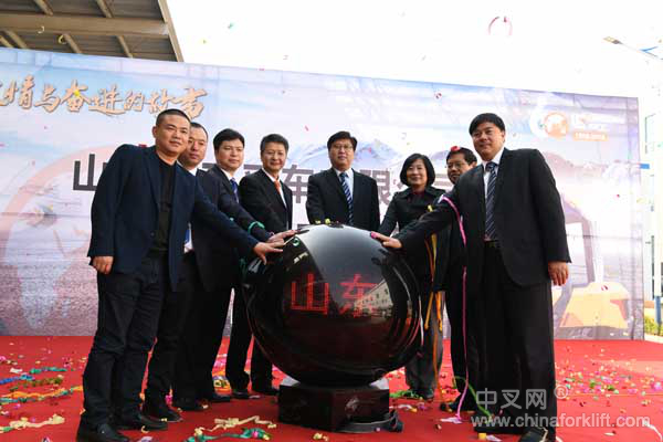 接下来由黄海波先生、王太平先生、张洁女士、陈一兵先生、谢力先生、尚之超先生、贾廷帅先生、鲁峰武先生八位嘉宾共同启动新工厂投产触摸球,在全体参会人员的倒数声中,在礼花的伴舞下,山东柳工叉车有限公司新工厂投产仪式正式启动。