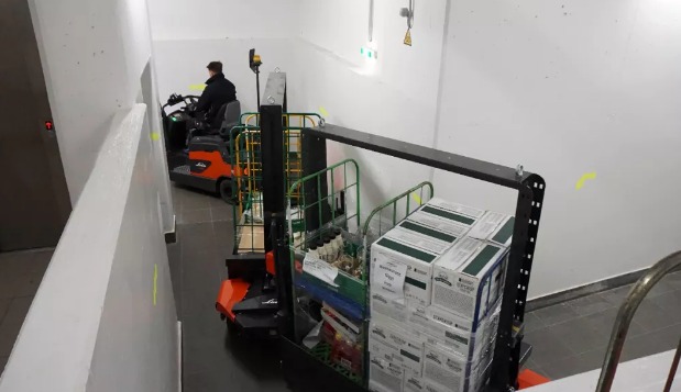 嗒哒~秘密就是一条长150米的通道,连接着输送终端和Giggijoch餐馆,而在通道里面,最重要的角色就是林德物流拖车。日常工作中,物流小车多用于生产车间或机场等户外运输区域,而这次不寻常的应用也让我们看到了林德物流小车的灵活性。