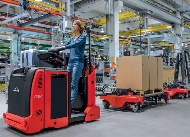作为贴心地考虑,林德物流拖车所有的轮子都有助于车体转向,并且在通道内的黄色箭头也时刻提醒司机最佳转向方位。当负载重量降低时,拖车自动开启驱动锁定,在转弯过程中降低速度,保证安全运行。