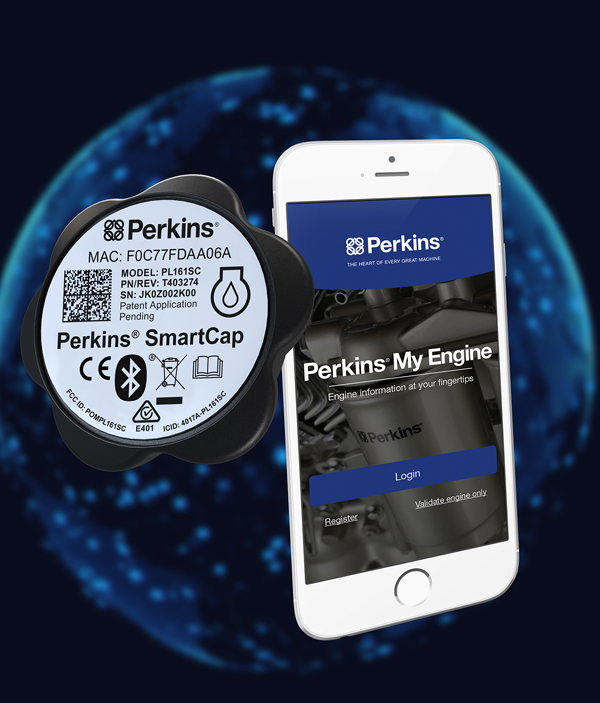 Perkins智能机油盖(Perkins® SmartCap)适用于Perkins所有新型和既有的机械式和电控发动机型号。这个智能机油盖安装十分方便,终端用户只需用它取代原来的机油盖,即可通过智能手机上的Perkins® 维护宝(Perkins® My Engine)App,将他们正在使用的发动机和手机连接起来。机油盖会监测发动机的运作情况,然后把数据直接传送到Perkins维护宝App。