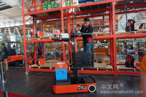 近几年中国电商、物流业发展迅速,让全球惊讶的中国双11引爆全行业对高效物流设备的重视和需求。在本届德国举办的CeMAT 2018国际物流展会上,具有能拣选高达6.5米货架上产品的JX1,是中力为快速发展的电商行业提供的紧凑型货架作业解决方案,吸引国际用户对中力产品的深度关注与分析。
