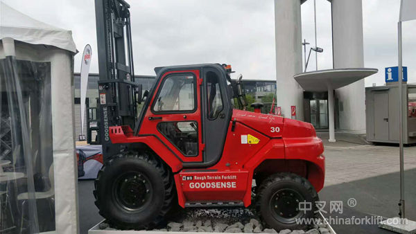 本次展出的3吨越野叉车是吉鑫祥的明星产品,最大的特点是驱动系统可以自动进行转换,在遇不同工况时,比如叉车后轮打滑时则可自动转换为前轮驱动轮,四轮驱动模式使吉鑫祥越野叉车改善了驾驶性能和牵引力以保证叉车的越野性能。同时吉鑫祥叉车起升系统采用宽视野门架,大幅改善了司机的视野范围,使操作更安全、快捷;发动机悬浮式减震装置;整车采用先进的人机工程技术设计,可调方向盘和座椅,使3吨越野叉车的驾驶体验非常舒适。