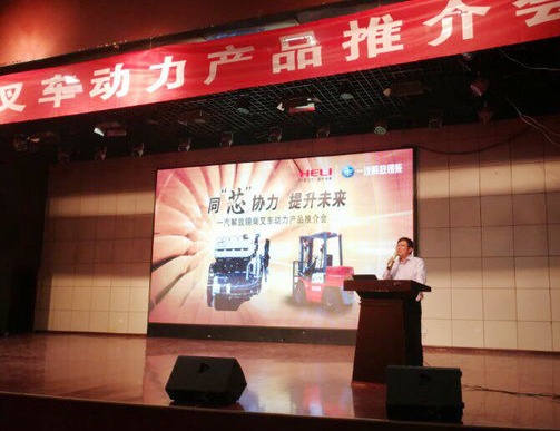 会上由一汽解放锡柴陕西分公司营销经理张宇向参会的嘉宾们介绍了锡柴非道路三阶段在合力叉车的主销产品的性能及相关卖点。