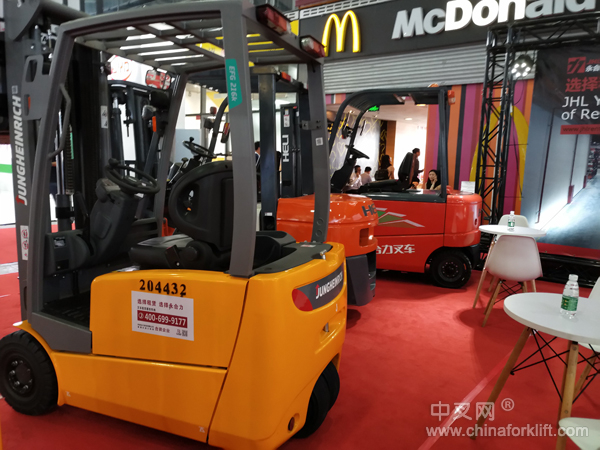 永合力租赁作为国内最大的叉车租赁服务商之一,本次展示了从内燃叉车到电动叉车车、从经济型到高端产品的六款租赁叉车。