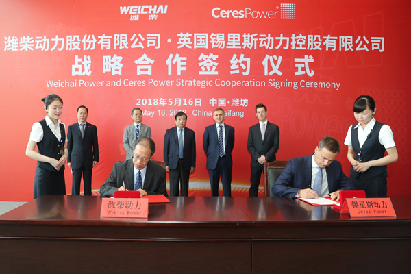 Ceres Power首席执行官Phil Caldwell 表示:此次与潍柴动力签署战略合作协议,对Ceres Power而言是一个重要的里程碑,我们很高兴能与潍柴动力建立合作伙伴关系。潍柴在中国市场拥有很好的客户基础,为我们SteelCell®技术进入中国市场特别是全面进入商用车市场提供了机会,同时潍柴动力拥有成功的国际化合作经验,我们对双方未来的合作充满了信心和期待。