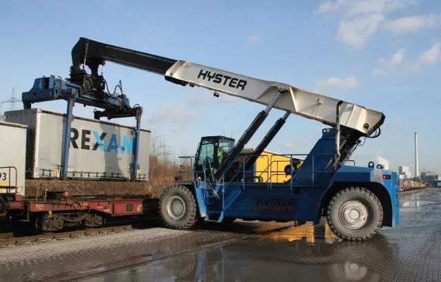 这样的操作环境要求物料搬运设备需要运行一天24小时,一周6天,总共一年4000小时的高强度使用频率。最后海斯特为该公司选用了RS 46-38LS IH ReachStacker (specially adapted)与RS 46-33 IH ReachStacker两款正面吊,并备有不同的额外特殊选项,以完美配合使用。这两款叉车都装有联运方式,允许它们同时处理两个标准容器。
