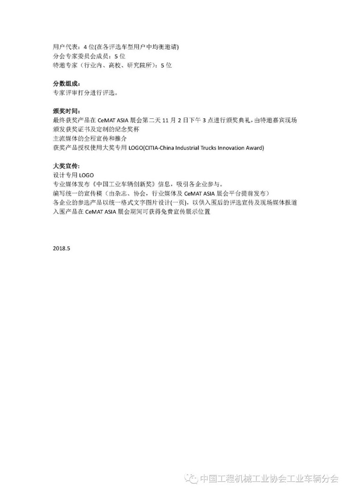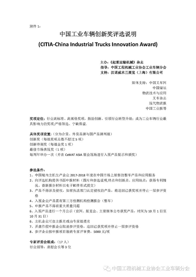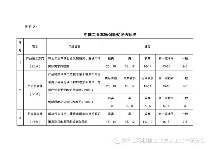 附件2:中国工业车辆创新奖评选标准