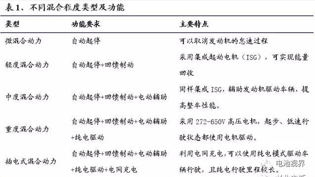混合动力汽车可以按照多种方式进行分类,除了按照混合程度分为插电和不插电混合之外,还可以按照混合方式不同分为串联、并联和混联;还可以按照动力耦合系统模型分为转矩耦合、转速耦合和功率耦合;按照混合程度类型,还可以为微混合动力、轻度混合动力、中度混合动力、重度混合动力等。