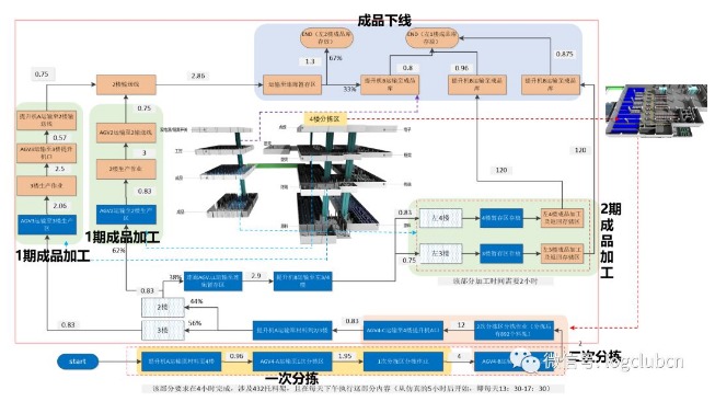 怎么配?智能物流在这里得以充分表现,智能工厂中主要还是考虑智能化的配送,比如采用AGV的配送,这里想强调的并不是配送智能化设备,而是将配送的规划,如路径配送批量,批次等与智能化配送工具如何融合,从实际的配送业务需求导向配送的设备,这才是科学的方法,而不是为了智能化而智能化。那么如何去规划和评估,我认为还是得从流程活动中的实际需求出发,将流程进行拆分,进行系统化的数据分析甚至是模拟分析,才能做到科学的配送规划。