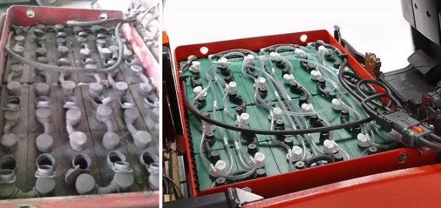 高温气候对电车电池也是个考验,看到下面左边这张图片,大家应该会和小德一样皱起眉头。夏日里,电池需要如何养护才能保证叉车高效、良好的运作的同时又能保持右图那样的高“颜值”呢?
