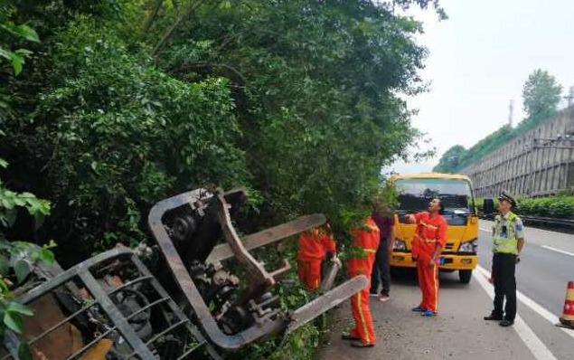 6月15日下午,在沪渝高速出城方向晏家服务区附近,一辆叉车“从天而降”,掉落在应急车道旁的排水沟里,所幸没有造成人员伤亡。