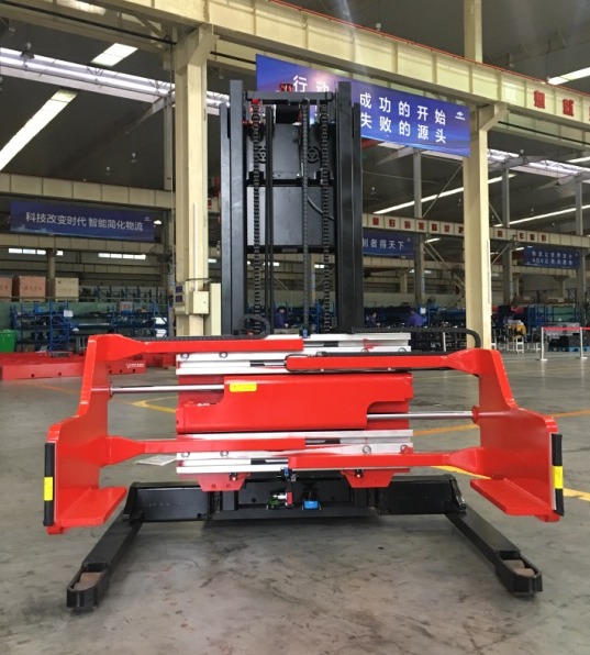 2018年5月,杭叉集团无人驾驶车辆AGV又增添了新的成员,“抱夹堆垛式AGV”在原先AGV的基础上,增加了灵活的手臂,能适应更多的工况,现已在轮胎行业成功应用。