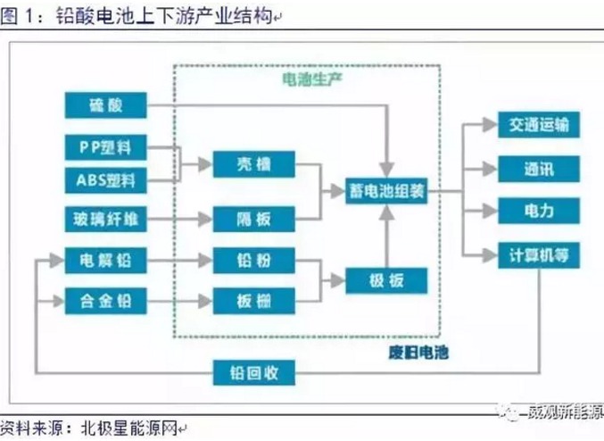 铅酸蓄电池的上游行业主要为铅冶炼行业和铅贸易商(大宗商品代理商)、硫酸生产、塑料制造等。铅酸蓄电池是国民经济的基础产品,广泛运用在交通运输、通讯、电力、铁路、国防、计算机、应急设备等各个领域。随着经济和科技的发展,这些行业对铅酸蓄电池的需求不断增加。与此同时,铅酸蓄电池技术水平的不断提高,产品质量和性能也不断提高,其应用领域不断扩大,下游行业需求不断涌现。随着铅酸蓄电池回收体系的建立和完善,铅酸蓄电池产业链将形成良性的“资源-产品-再生资源”的闭环结构,有望成为资源节约型的循环发展产业。