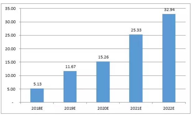 图表2 中国动力电池回收利用市场规模预测(单位:Gwh)