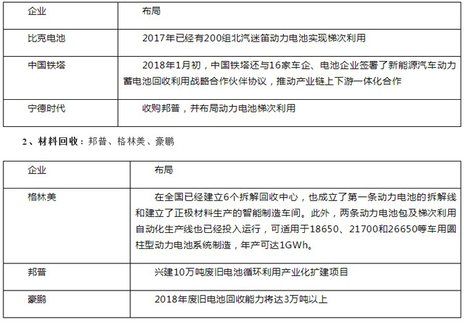 随着各项动力电池回收利用政策的发布,许多企业也加紧了动力电池回收利用方面的布局。