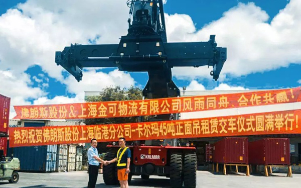 2018年7月16日,佛朗斯股份上海临港分公司—卡尔玛45吨正面吊租赁交车仪式在上海金可物流有限公司圆满举行。上海临港分公司总经理丰青伟、维修经理周向东携租赁服务团队,为本次的租赁车—卡尔玛45吨正面吊的完美交付做好准备。