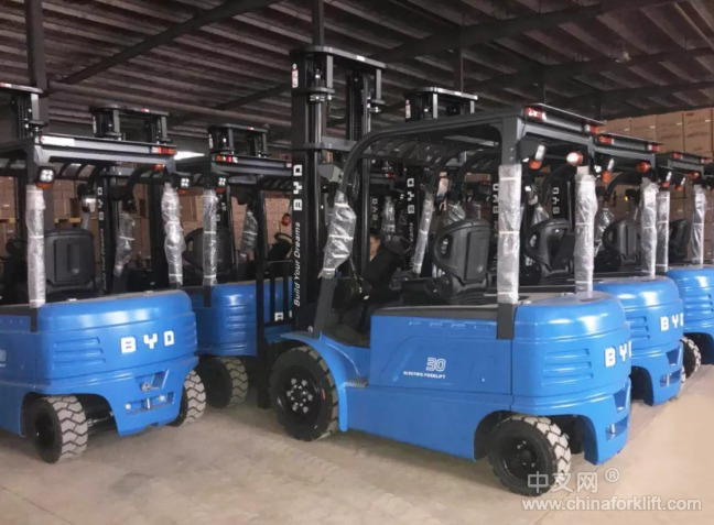 比亚迪于2009年进军电动叉车行业,2011年已经开发出铁电池技术电动叉车,最初使用于比亚迪内部的各事业部,2012年6月,比亚迪电动叉车首度亮相广州叉车展,2013年1月,推出3.5吨电动叉车填补国内大吨位电动叉车的市场空白,2014年推出冷链叉车及叉车租赁业务,2016年比亚迪三支点的ECB18C型号的叉车首次获得IFOY国际叉车大奖及,同年比亚迪还获得第一届中国工业车辆技术创新奖,2017年比亚迪叉车凭借创新技术优势获得中国工业车辆创新奖零部件类金奖。