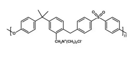 聚 2, 6-二甲基对苯氧化物(Poly(2, 6-dimethyl-1, 4-phenylene oxide),PPO,图 4)[31] 具有优良的耐热性和化学稳定性,也常作为易溴化、进而功能化的骨架聚合物,徐铜文等 [32] 以 PPO 为基膜,利用季胺化和氯乙酰化等方法,合成了一系列以 PPO 为基础的新型阴离子交换膜。