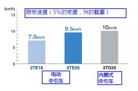 同时,在爬坡作业时,3TE也游刃有余,可媲美于内燃式牵引车。