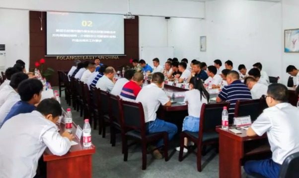 2018年8月4日,佛朗斯股份国内事业版块华东、东南片区2018年二季度经营业绩总结会在昆山基地隆重召开。公司总经理侯泽兵、董事长助理戴云保、副总杨庆元、总助霞朝明、总部相关管理干部及华东、东南片区经营干部参加会议。本次会议由总助霞朝明主持,会上主要回顾总结了国内事业版块华东、东南片区2018年第二季度及上半年的的经营业绩及重点工作的完成情况,同时对如何完成下半年度目标进行了分析与讨论。