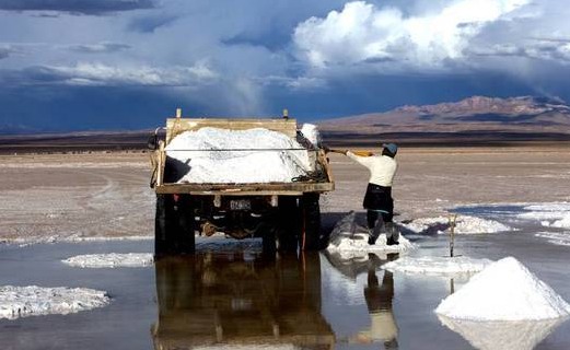 这名男人在玻利维亚乌尤尼的盐滩工作,这个面积4000平方英里的偏远地区拥有世界上最大的锂储量