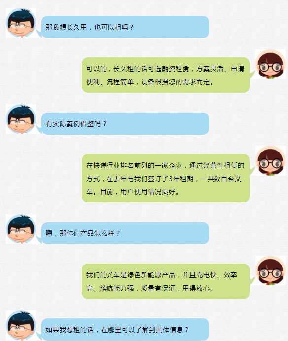 “你先了解嘛,实在不放心就租大品牌的,听我朋友说比亚迪叉车也不错,要不你先了解一下。”代理商推荐说。
