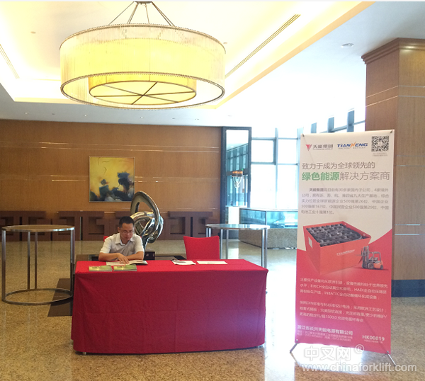 会议期间,天能叉车电池在会议室外设立了展区,集中展示了天能在叉车行业推出的系列产品和成果。天能集团叉车系列电池产品性能均处于世界领先水平,成熟的技术水平、服务体系、品牌优势,在市场上赢得了良好的口碑和信誉。随着电动叉车的快速发展,天能电池凭借不断研发与推出的科技创新成果,赢得了林德、合力、杭叉、诺力、宝骊等国内外主流主机厂的青睐和好评,成功进入他们的配套体系。
