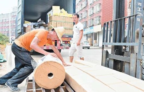 8月9日上午11点,在江东街道金村的一家托运部堆货场,37℃高温下,51岁的孟宝庆头顶毒辣的太阳,驾驶叉车不停地辗转于堆货场与大货车之间。发动机就在座位底下,叉车一点火运行起来,整个人犹如在烤箱里烘烤。点火、换档、行进、倒库、转向,叉取、起升、降落、搬运,每个动作都在明晃晃的烈日下完成,大颗大颗的汗珠顺着孟宝庆的脸颊不停地往下掉。