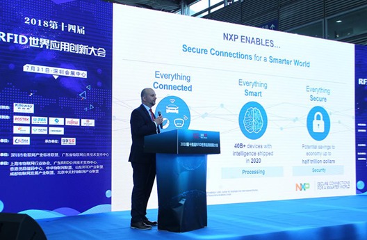 7月31日,由中国物联网产业应用联盟主办的2018第十四届RFID世界应用创新大会在深圳会展中心盛大召开,会议吸引了大量行业精英、专家学者的参加,共同探讨RFID技术的创新应用。恩智浦半导体智能身份识别与安全市场总监Mahdi Mekic先生在本次大会上以“RFID和区块链的融合”为题进行了精彩的演讲。整场演讲从RAIN RFID和区块链两个概念入手,Mahdi先生不但对二者的概念精彩解析,并且介绍了具体相关现实应用、现有的成功的案例。
