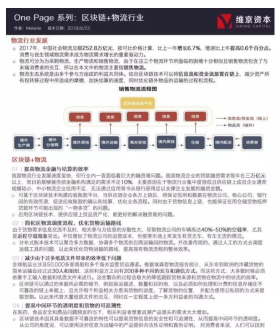 在物流领域,区块链技术能渗透到其方方面面并作出相应的改善。资产上链,保证信用和数据在多方利益相关者之间的共享可以改善中小型物流企业融资难和结算交易不便的问题。同时信息的即时同步共享和更加统一的非纸质的多方沟通方式,能够简化物流调度的流程,优化货物的运输途径,减少由于沟通带来的贸易摩擦。依托于区块链不可篡改的特性,使得货物的可追溯性有了更好的保证。