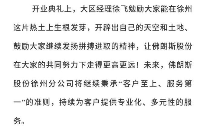 热烈祝贺佛朗斯股份第92家分公司—徐州分公司开业大吉!