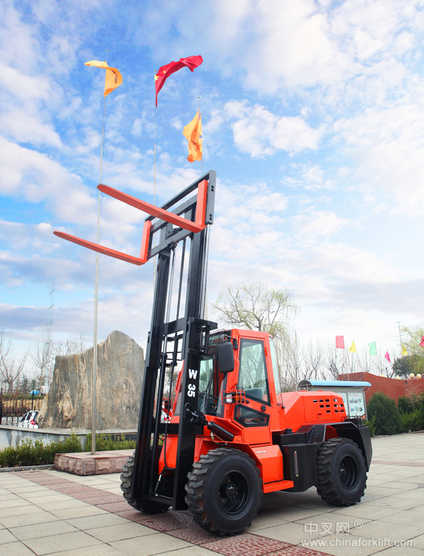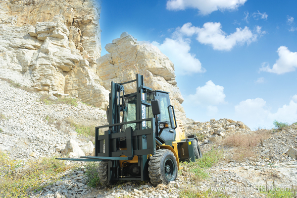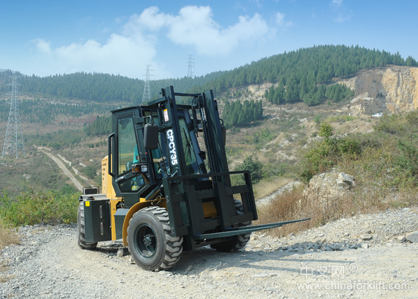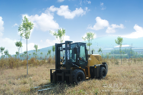 越野叉车是在机场、码头、车站等路况条件较差的物资集散地装卸物资的设备,它具有良好的机动性、越野性和可靠性。越野叉车是一种可以在坡地和不平地面上安全高效的进行物装、卸、堆垛及搬运作业的工程车辆,和平衡叉车一样它可装置货叉或更换多种属具来高作业效率。越野叉车有多种结构型式,有平衡重式、铰接式等。