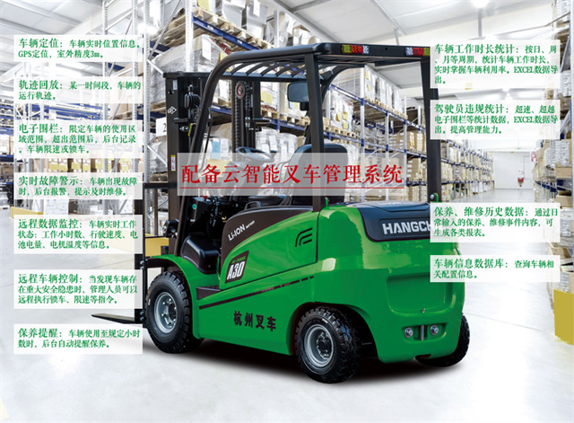 此外,杭叉为顺丰定制打造的锂电池叉车,全部装配定制版云智能模块系统,方便顺丰管理叉车车队。通过管理后台,可轻松查看每一台锂电池叉车工作状况,更可实现远程数据监控(包括车辆实时位置、工作小时数、行驶速度、电池电量、电机温度等信息等数据),提高叉车使用效率降低使用成本。杭叉定制版云智能模块可加速实现企业工业4.0物流搬运,满足各物流环节的软性连接,精准地完成各项任务。