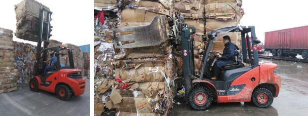 林德静压传动叉车在业内一直以高效可靠著称,和多家知名大型纸业均有合作,是纸业行业的优秀伙伴。纸业的工况繁重,生产环境恶劣,比如废纸车间,驾驶员快速地将废纸从卡车上搬运到废纸区,需要把纸堆撞松散,配合门架不断提升下降,并且频繁换向。此外,废纸区域粉尘较大,作业时间长,对于发动机也是极大的考验。林德3-3.5吨静压传动叉车能够实现冲顶撞的动作,快速提升下降,短距离频繁换向,长时间的搬运作业都可以保证整车的高效持续运行。
