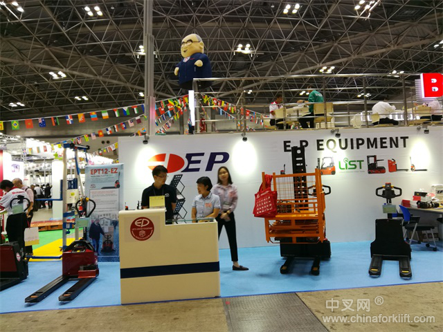 来自中国的工业车辆参展企业仅浙江中力搬运设备有限公司(E-P EQUIPMENT)一家,现场重点展示了电动托盘车系列以及电动堆高车产品,简约、流线形的外观设计,灵活的操作性和产品性能,对于向来重视效率价值的日本用户来说更加青睐。