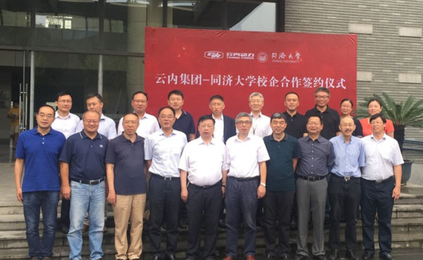 2018年9月7日,云内集团与同济大学校企合作签约仪式在同济大学嘉定校区新能源汽车工程中心隆重举办。出席签约仪式的云内集团领导有党委书记、董事长杨波,总经理杨永忠,出席签约仪式的同济大学领导有副校长顾祥林,科技管理部部长何鹏飞,基金办主任廖宗延,物理科学与工程学院院长羊亚平,机械与能源工程学院院长卞永明,中德工程学院院长王奕俊,汽车学院党委书记曹静,汽车学院院长、党委副书记张立军以及同济大学多位教授。