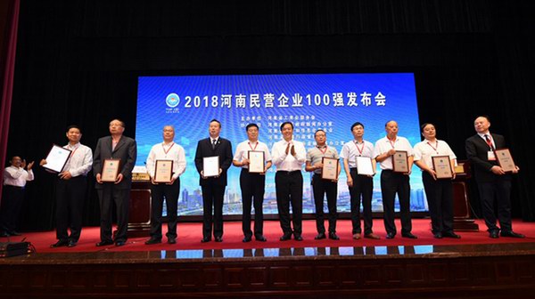 9月21日,由河南省工商业联合会主办的2018河南民营企业百强发布会在郑州举行。全国政协常委、省工商联主席梁静,河南省委统战部副部长、省工商联党组书记、常务副主席李德才等领导出席,近500人参加了本次大会。会上,正式发布了2018年河南民营企业100强、河南民营企业制造业100强、河南民营企业现代服务业100强、河南民营企业现代农业100强、河南民营企业社会责任100强榜单和调研分析报告。