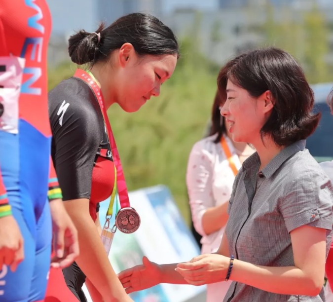 公路自行车比赛是在“绿水青山就是金山银山”的湖州安吉举行,也是本届省运会中风景最美的项目,历时3天的比赛,骑手们用青春活力的气息和脉动在灵峰街道上跳跃绽放。