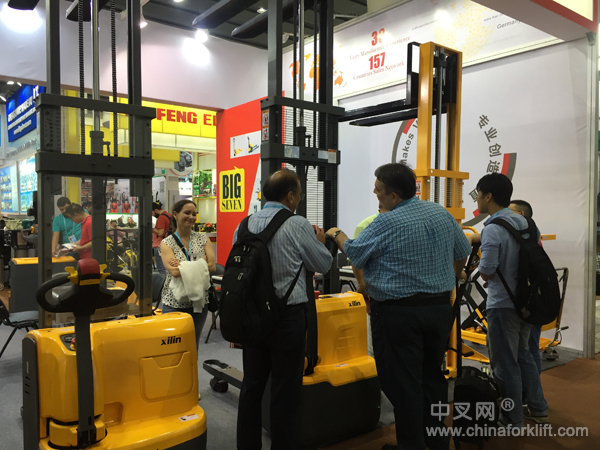 如意本届广交会上以电动仓储产品为主,包括电动搬运车、电动堆高车、电动牵引车、高位前移式叉车、电动叉车等。据如意外贸负责人介绍,在本届展会上,中小型电动车非常受欢迎,传统的德国红点得奖产品CBD15W和 CDD10RE仍旧是人气火爆。