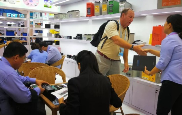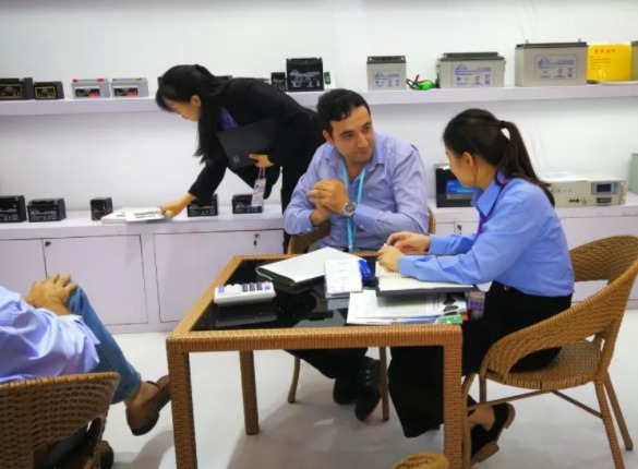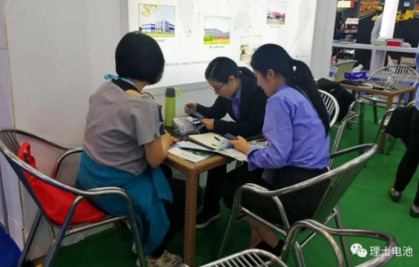 ▲ 各销售人员忙着接待,客户对理士国际的产品给予充分的肯定